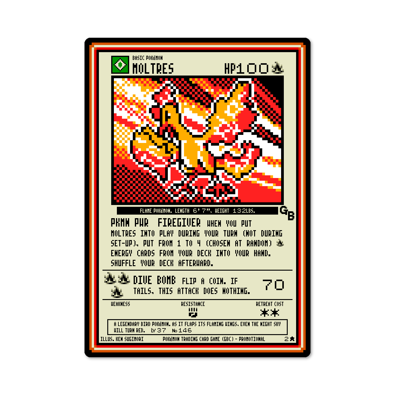 Moltres #2 custom card from the Promotional Series, designed in the style of the original Pokémon Trading Card Game. Features graphics from the 2000 Nintendo Game Boy Color game and is based on the in-game version of the official TCG card.