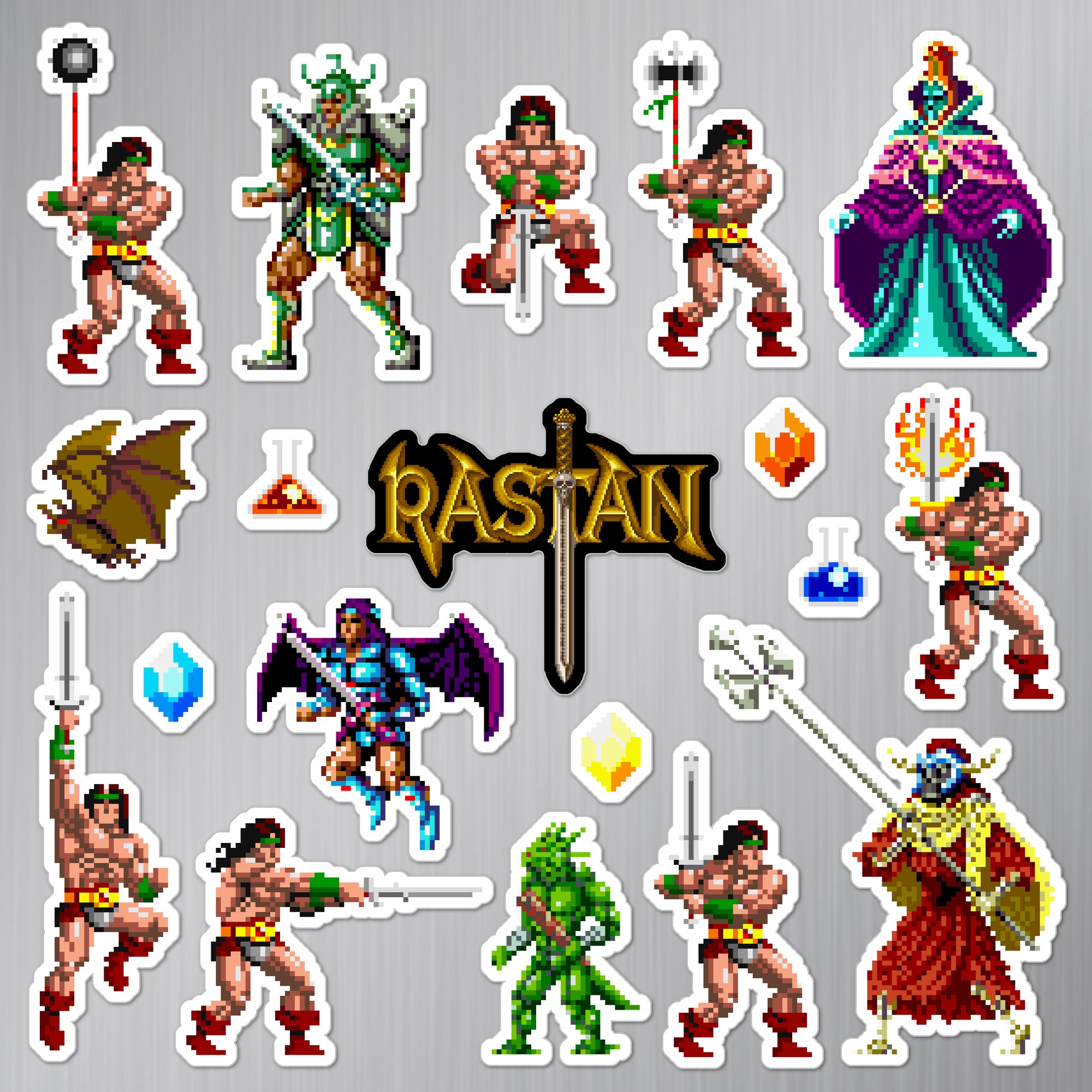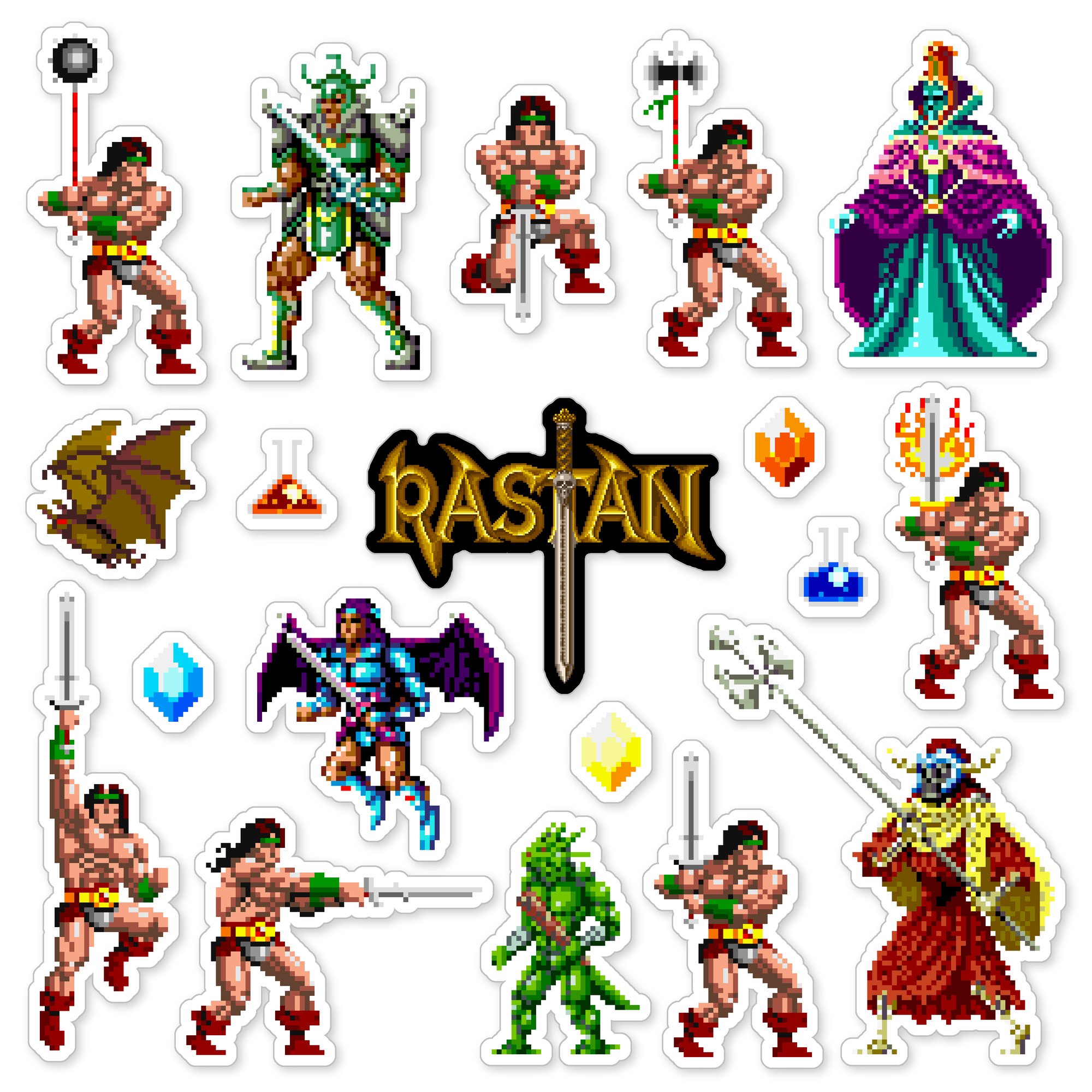 Made to order 19-piece Rastan set features characters and items from the 1987 Taito arcade game.